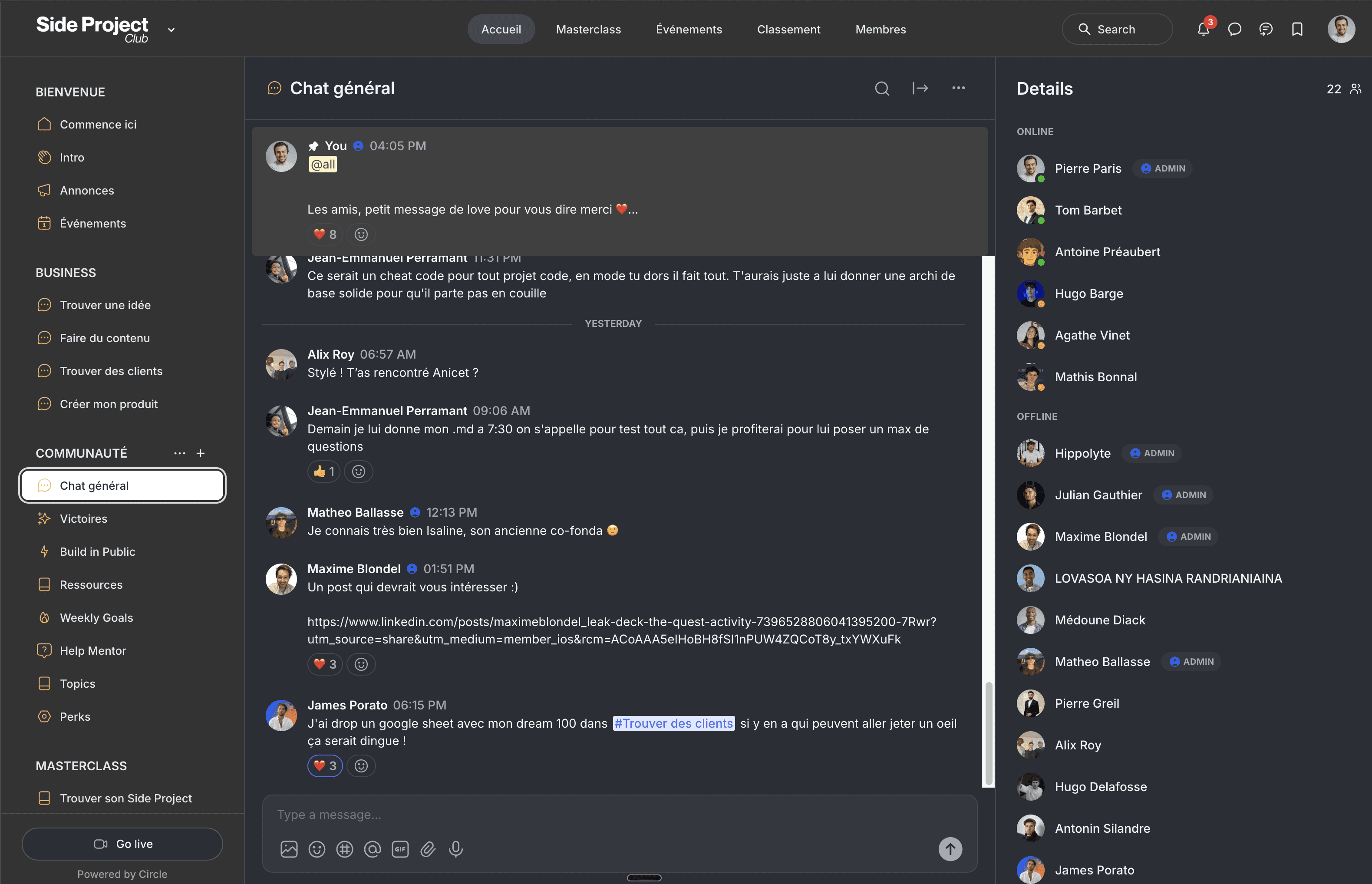 Chaque semaine, tu passes en mise en action réelle : un objectif, un live, du feedback, et du build concret.